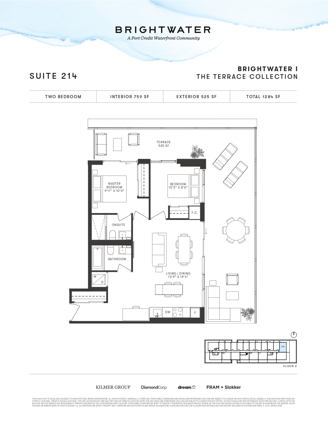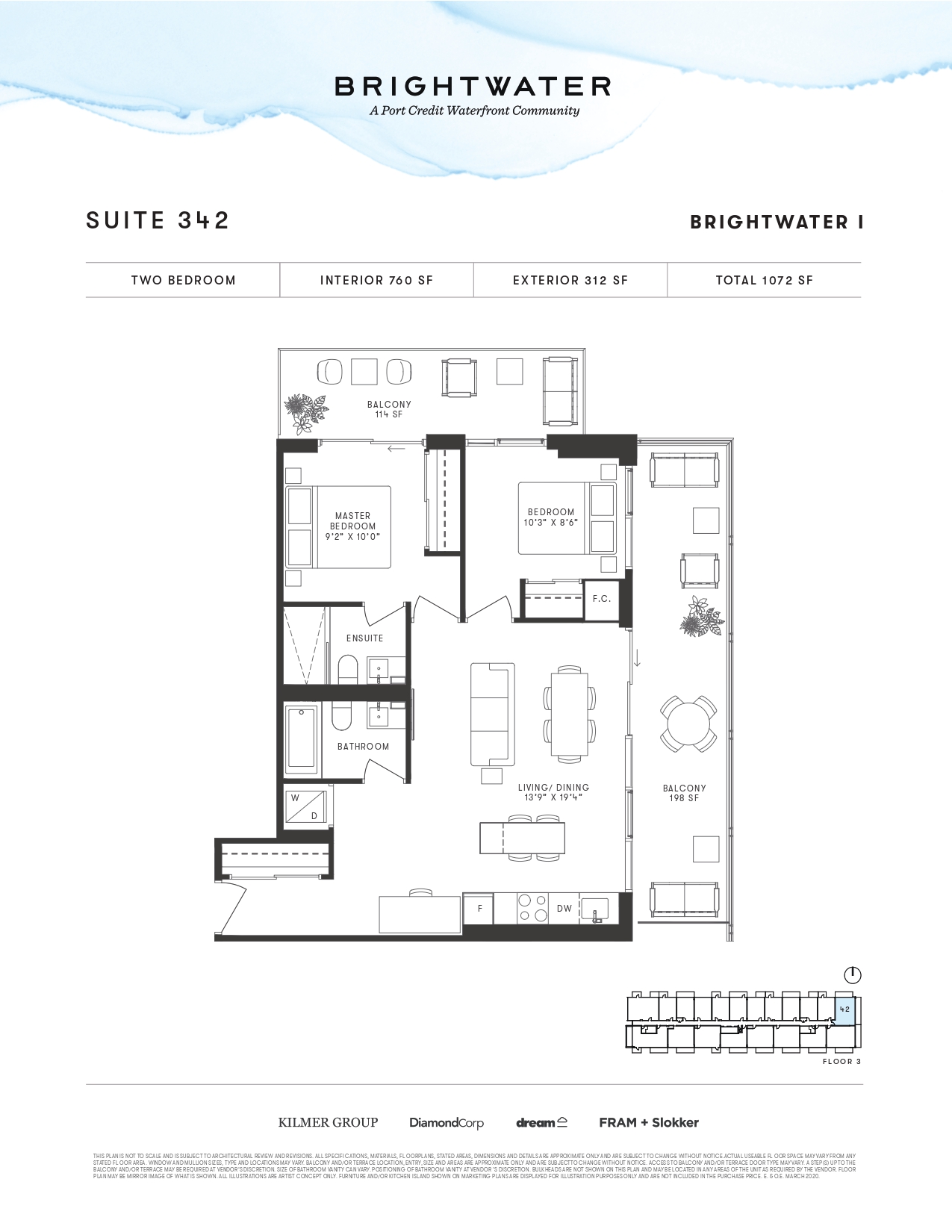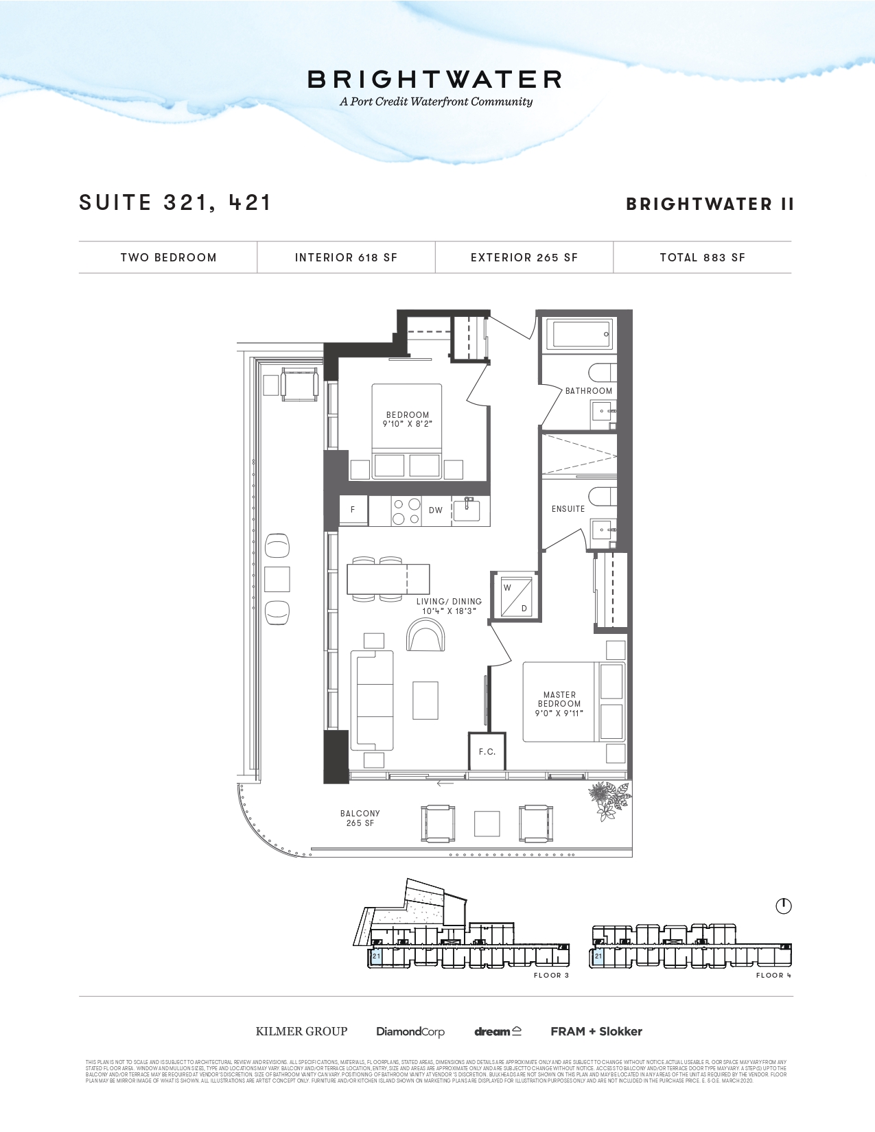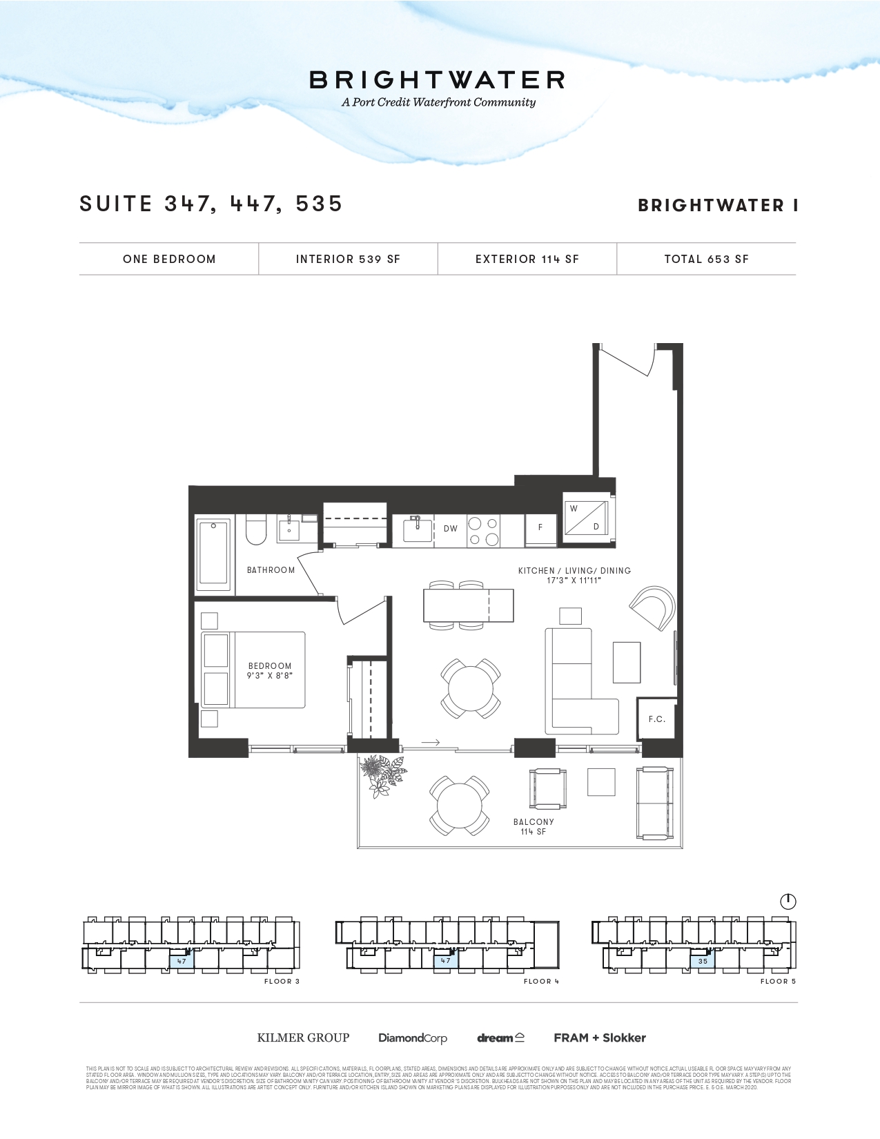 Brightwater is a new condo and townhouse development by Dundee Kilmer Developments Limited , Diamondcorp , Dream and Fram + Slokker currently in preconstruction at 70 Mississauga Road South, Mississauga. The development is scheduled for completion in 2023. Sales for available units range in price from $509,900 to $1,039,900. Brightwater has a total of 3000 units. Sizes range from 501 to 985 square feet.