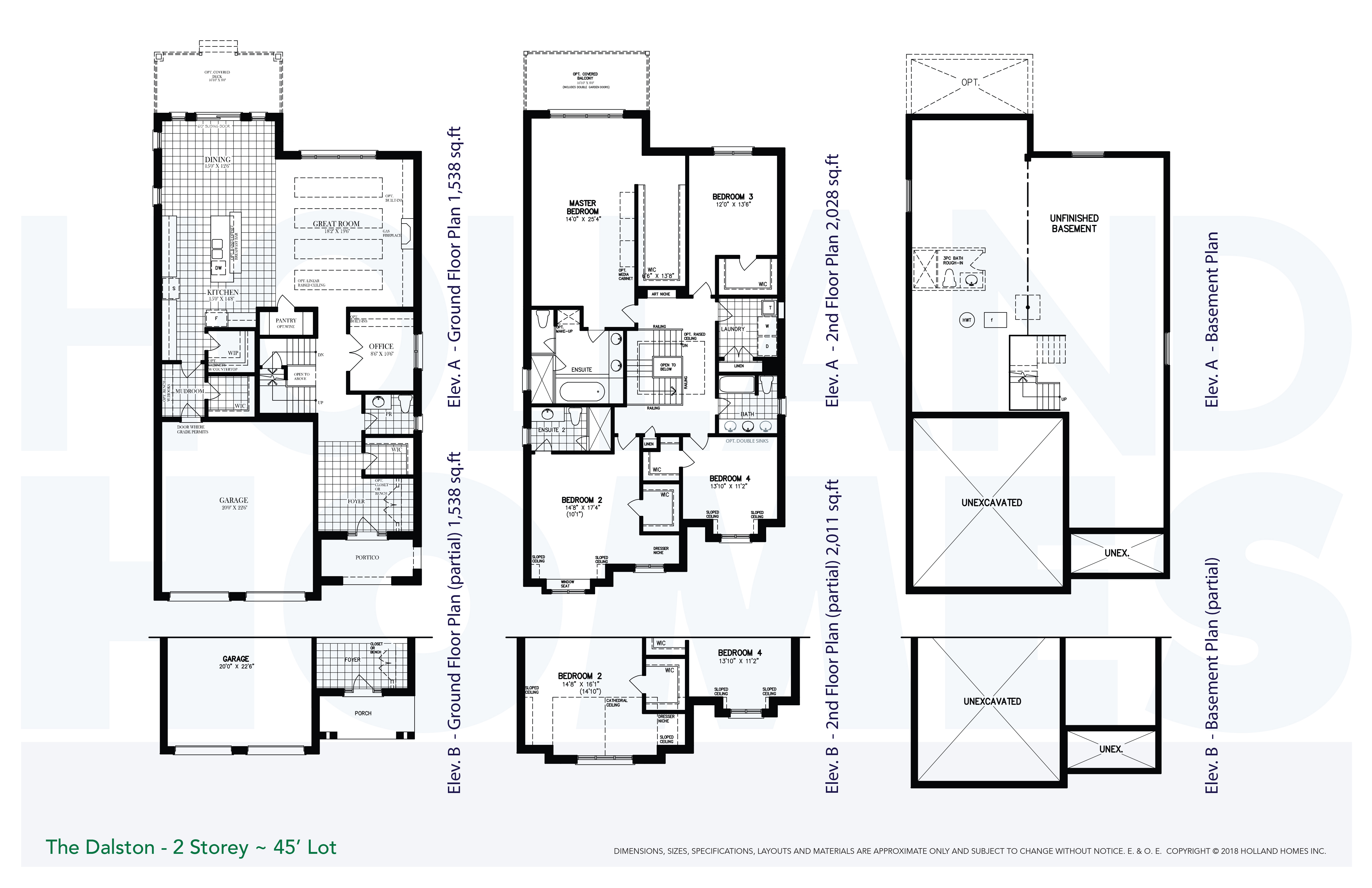 - Elevation A to be all brick exterior with stone skirt, and Elevation B to be all