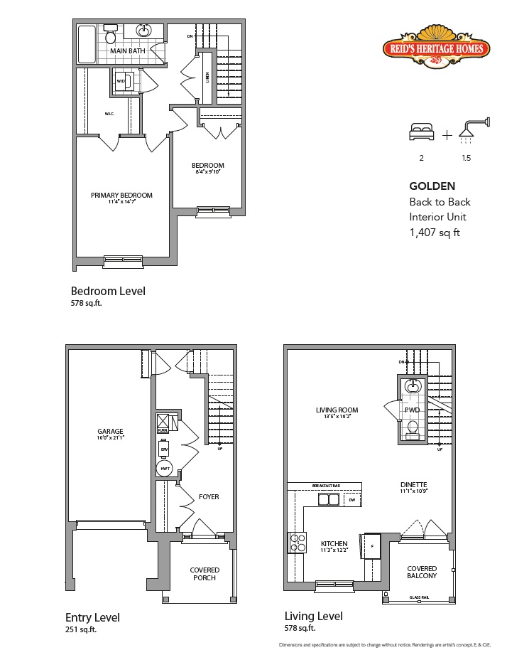 Exquisite Gourmet Kitchens ? Stylish single lever chrome faucet in kitchen with stainless-steel undermount sink. ? Kitchen cabinets with contemporary matching hardware (selected from samples provided by the Vendor) ? Sleek and stylish Granite countertops in kitchen and bathrooms (selected from samples provided by the Vendor) Stunning Kitchen Appliance Package ? Stunning 4-piece stainless steel kitchen package including fridge, stove, dishwasher, and OTR microwave from Vendor?s line. ? Stacked washer and dryer in white. ? Upgrades available from Vendor?s selection only Beautiful Bathrooms ? 5 ft acrylic bathtub with tiled walls on 3 sides per Vendor?s selection (as per plan) ? Undermount white vanity sink with single lever chrome faucet in bathrooms and a white pedestal sink in powder rooms ? Pressure and temperature control valve in tub and shower units ? Quality rental gas hot water heat ? Shut off valves on all sinks and toilets for peace of mind Modern Quality Flooring ? 5/8? tongue and groove sub floors, glued and screwed to floor joists ? Luxury vinyl plank flooring throughout as indicated on plan to be selected from samples provided by the Vendor Elegant Details Throughout ? Vanity mirrors in all bath and powder rooms ? All exterior and interior hardware pre-selected by Vendor ? Satin nickel interior levers ? All exterior passage doors with deadbolts ? Paint grade railing (as per plan) and handrail at all staircases. All stairs to be carpet grade with painted stringers, (as per plan) ? Upgraded chrome towel bars and paper holders in bathroom(s) ? Interior trim is 2 3/4? flat profile casing and 4? flat profile baseboard ? Modern style interior doors as per Vendor selection Professional Painting ? All finished walls and trim to have 3 coats of paint, one primer and two finished coats Architecturally Harmonious Exteriors ? Architecturally-designed laminate shingles ? Maintenance-free aluminum soffits, fascia, eavestrough and downspouts ? All windows and exterior door frames caulked ? Contemporary Brick, Stone and Vinyl Siding exterior finishes as per drawings ? Exterior finishes pre-determined by the Vendor ? Exterior glass railing (as per plan) Welcoming grounds ? Fully paved asphalt driveway (where applicable) ? Lot graded and fully sodded ? Privacy fencing as per plan Quality Concrete Foundation ? Poured concrete foundation, front porch and garage floor (as per plan) ? Pre-cast concrete walk and steps to front entrance Energy-Saving Insulation and Drywall ? Fully insulated home: exterior walls above grade R-27, attics R-60, exposed floor insulation R-31 ? Radon rough-in ? California ceilings throughout, except small closets Enhanced Energy Efficient Doors and Windows ? Double Low E windows for energy-saving performance with maintenance-free vinyl cladding ? Sliding, insulated Low E argon glass patio doors as indicated ? Metal clad-insulated front door (as per plan, and door from house to garage, if applicable) ? Insulated garage door as per architectural control ? Screens on all operating windows and patio doors High Performance Mechanical Systems ? High Efficiency forced air gas HVAC system with Central Air Conditioning ? ERV ? Energy Recovery Ventilation System (simplified installation) ? Exhaust fan in kitchen vented to exterior ? Dryan vent to exterior ? Heavy Duty Electrical Equipment ? 100 Amp. Electrical service with breaker panel ? Energy saving LED bulbs in all compatible fixtures ? Quality electrical light fixtures, interior & exterior ? Ceiling lights in all bedrooms ? Smoke detector on each level, as per building code ? CO detector as per building code ? Heavy duty cable outlet for electric dryer and stove ? Doorbell on the front door ? Contemporary style Decora switches and plugs Rough-ins for Future Use ? Rough-in for 2 CAT5 and 2 RG6 ? USB outlet in Master Bedroom ? Rough-in for future garage door opener (as per plan) New Home 7-Year Warranty ? 7-year Tarion Warranty, in accordance with the ?Ontario New Home Warranties Plan Act? specifications* Extra Features ? Premises cleaned at construction completion ? 2? x 6? exterior wall construction ? All ducts are cleaned prior to occupancy ? All underground utilities are fully paid for by the developer, except if modified by the purchaser